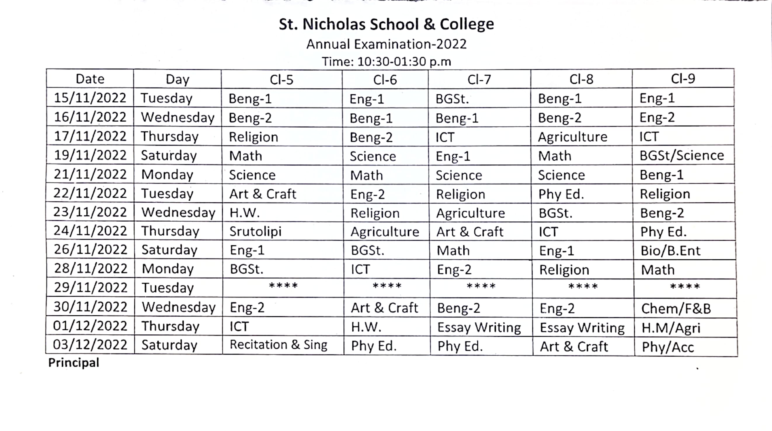 তোমাদের #বার্ষিক_পরীক্ষা আগামী ১৫/১১/২০২২ খ্রিঃ হতে ০৩/১২/২০২২ খ্রিঃ পর্যন্ত অনুষ্ঠিত হবে।